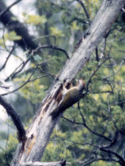 オスは頭上が赤色,メスは後頭部のみ赤い